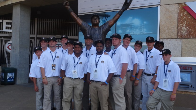 For most of these players, it was their first time stepping foot in the home of the Minnesota Twins and it wasn’t hard to see their excitement. Players scampered to get their photos taken in front of the statues that surround Target Field, the young men from Bradenton climbing up next to Kent Hrbek’s likeness — a player who had retired from the majors before many of them were even born.