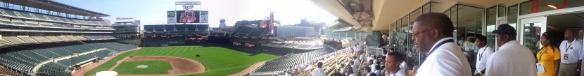 The RBI World Series took over Target Field tonight as the 16 teams competing throughout this week’s tournament took to the field for a pre-game ceremony. For the two Chicago White Sox teams, it was an especially exciting experience because they were able to spend a few moments chatting with members of the Chicago White Sox — the team they have been representing throughout the RBI experience.